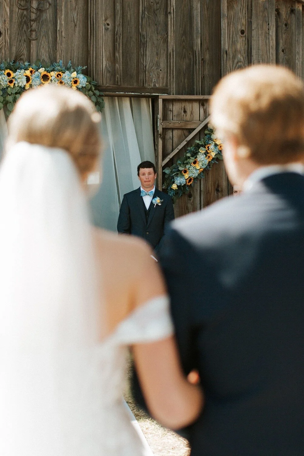 Even if you don’t see each other before you’re walking down the aisle, there are still so many options for sharing an intimate moment to chat, pray, hold hands, and calm each other’s nerves without being in one another’s line of vision. You can exchange gifts or letters while each other is getting ready, or in the presence of one another. Your photographer will absolutely be there to capture the sweet innocence of the two of you holding hands around the corner, praying, or hyping each other up for the day. These moments are incredibly special and are often even more emotional than a traditional first look!
