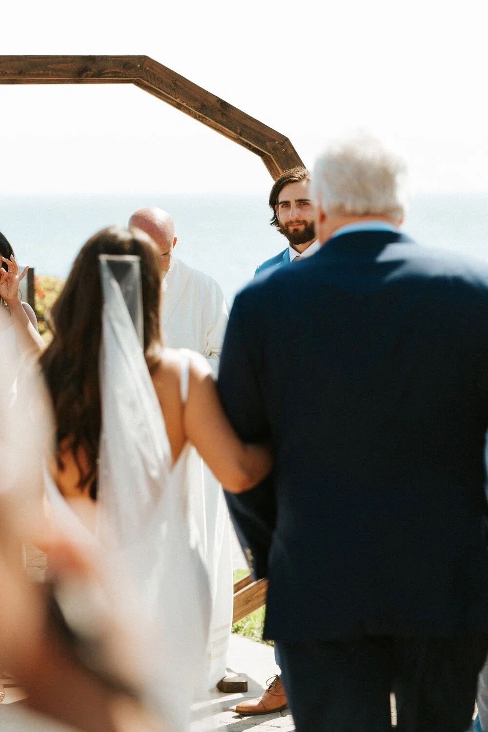 First and foremost, we were a covid couple who chose to go through with wedding plans even with a reduced guest list. The fact that we have people in our lives who love us enough to travel to California in the middle of a pandemic (some from states away!!) made it that much more important to us that we do our best to enjoy all the time we could have with all of our people. It was pretty much imperative that we organized our timeline to offer that time: moving our bridal party & family photos to before the ceremony so that we could mingle with our guests, and enjoy the absolutely delicious appetizers we chose for cocktail hour (give us alllllll the food)!!!