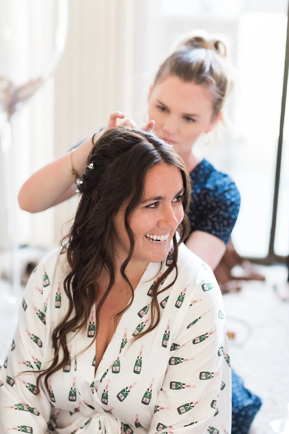 Plans were modified, but we still got to enjoy our mornings getting ready. Joseph and the boys finished setting up the barn, and then drank Cactus Cooler, bourbon, and shot rifles before cleaning up and getting ready for the ~ marriage. ~ Us gals got ready at Joseph’s and my tiny apartment over champagne & bagels because who doesn’t love carbs? I cried a tonnnn with Joseph’s mom about the sweet man she raised and I was about to marry. Getting ready time got super emotional and I was THERE for it!