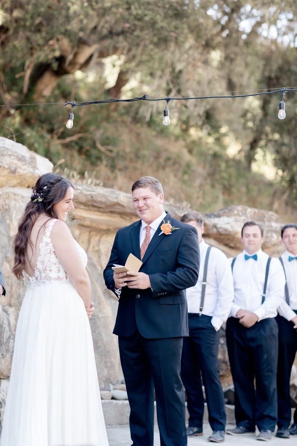 Joseph and I were SO FREAKING EXCITED to see each other and are so glad we had a first look. We both said after the fact that we missed each other like crazy all day, and were absolutely dying to just be together. We shared the sweetest moment under the spanish moss at the ranch, and settled our hearts and nerves before we did the thing!!!!!