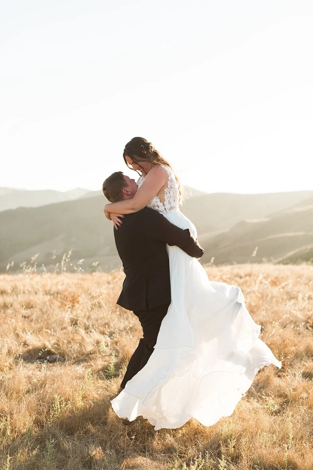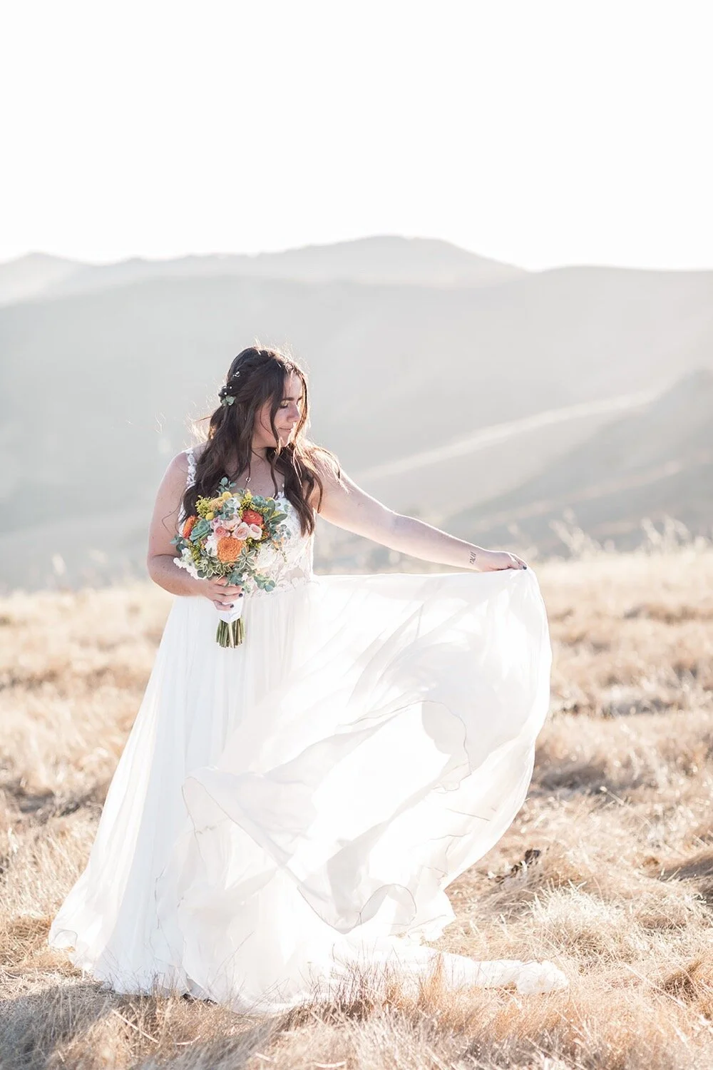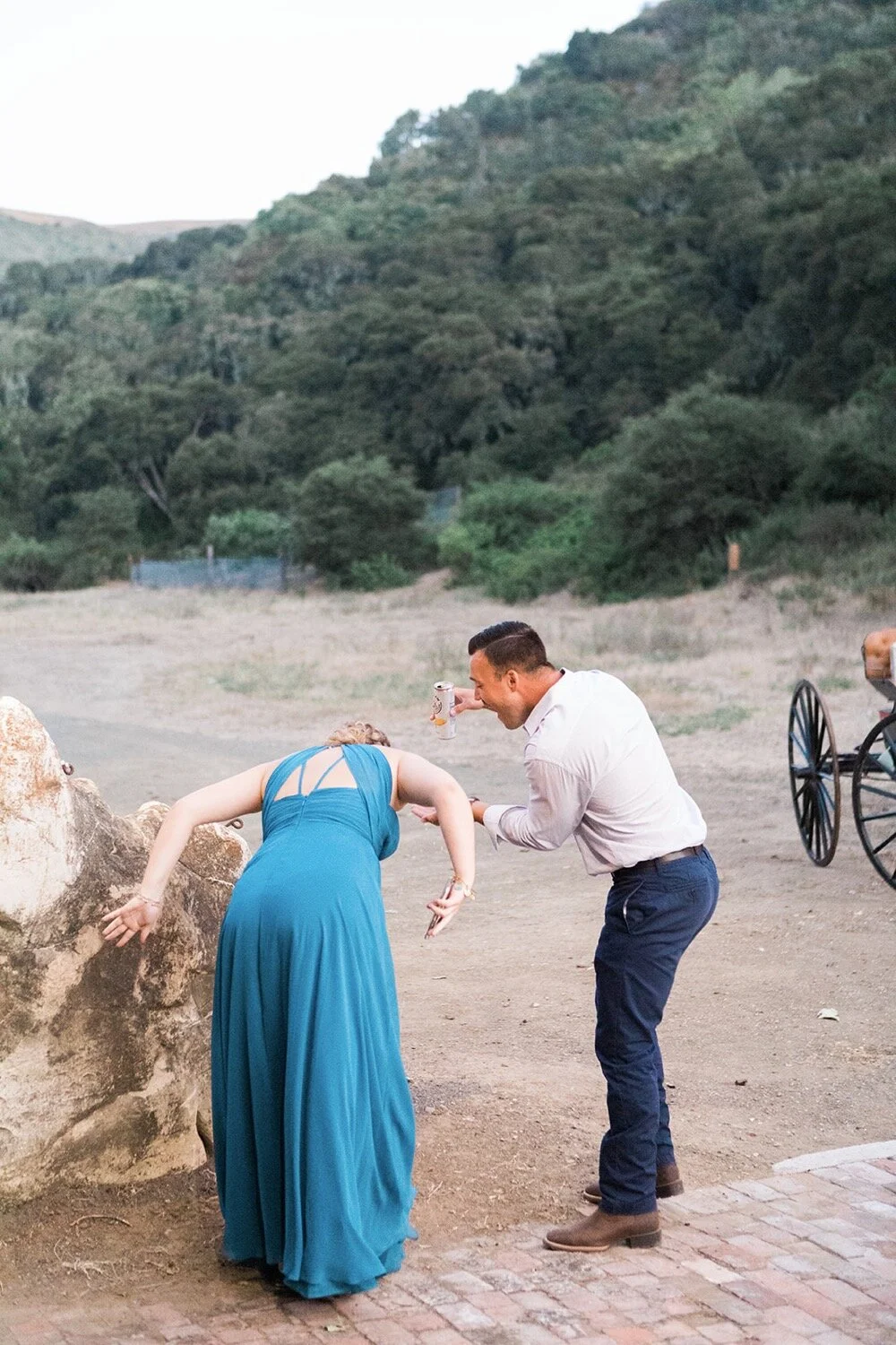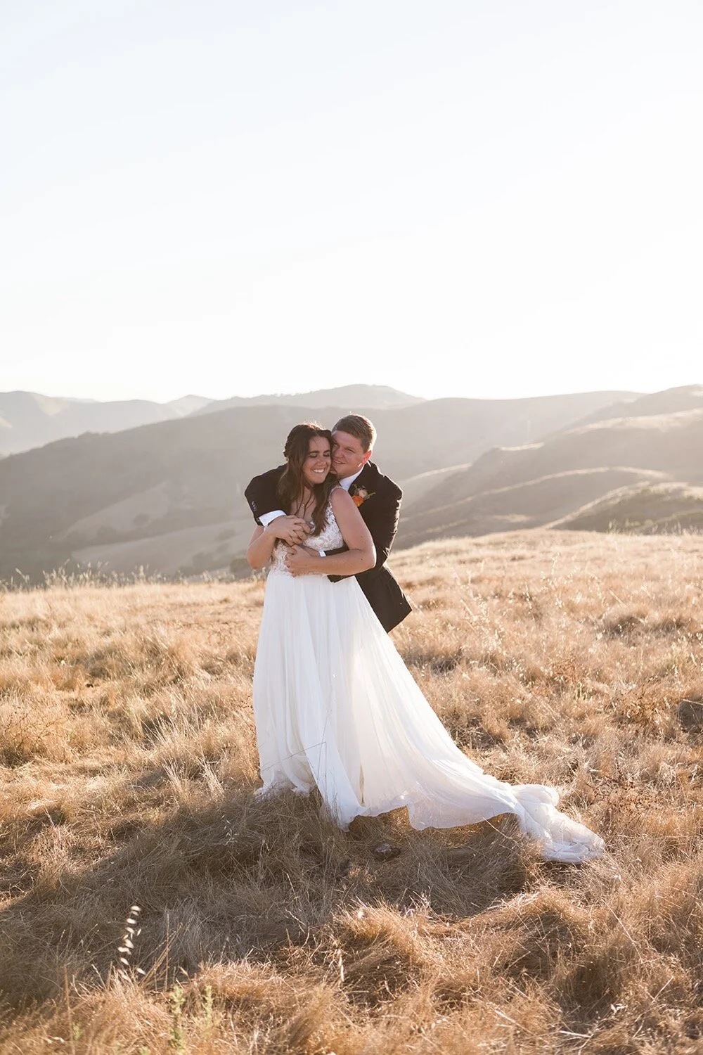 After the ceremony, we got to enjoy cocktails and all the yummy bbq with our friends and family before we shared our first dance to Tennessee Whiskey by Chris Stapleton, a song we seem to slow dance to alllll the time in our kitchen. We cut our cake and then scrambled up the mountain for our seriously breathtaking golden hour photos!!! We looked over the whole Los Osos Valley and soaked in everything!! LIKE HOLY MOLY WE WERE MARRIED!!!! EEP!