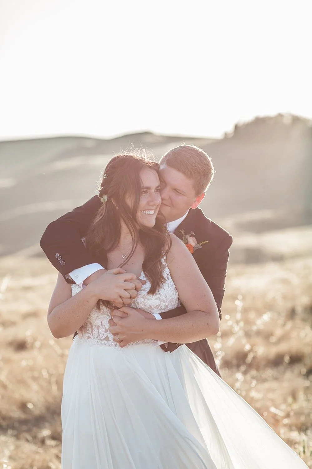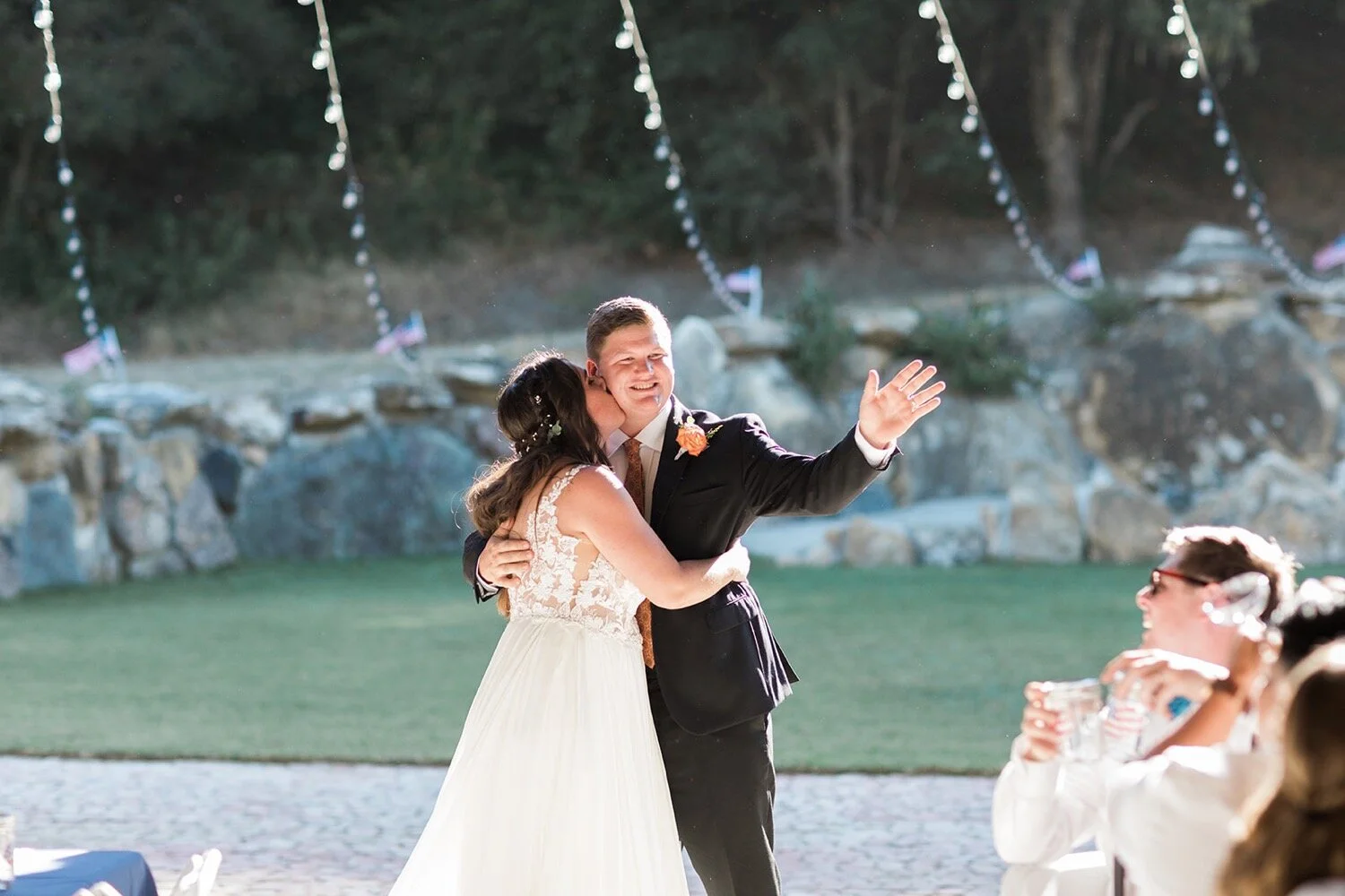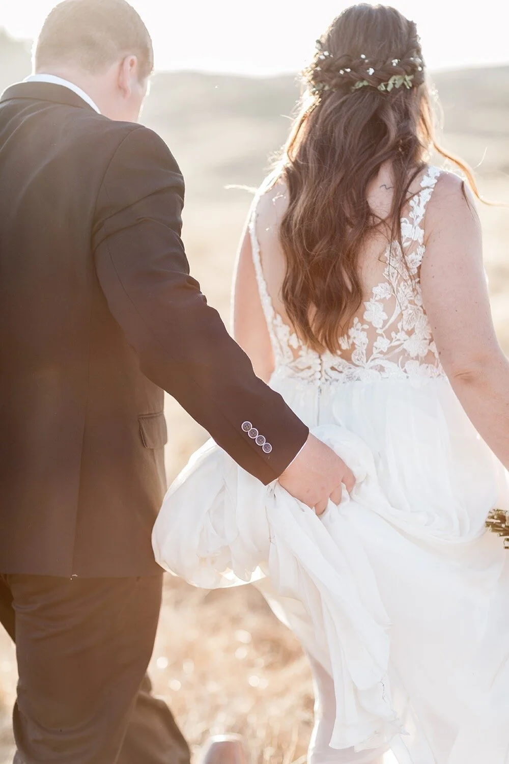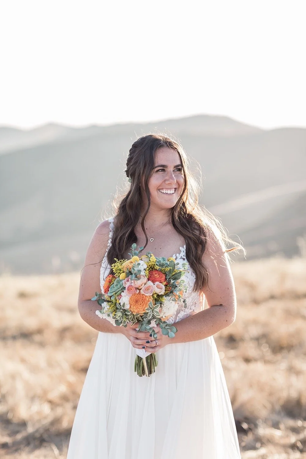After the ceremony, we got to enjoy cocktails and all the yummy bbq with our friends and family before we shared our first dance to Tennessee Whiskey by Chris Stapleton, a song we seem to slow dance to alllll the time in our kitchen. We cut our cake and then scrambled up the mountain for our seriously breathtaking golden hour photos!!! We looked over the whole Los Osos Valley and soaked in everything!! LIKE HOLY MOLY WE WERE MARRIED!!!! EEP!