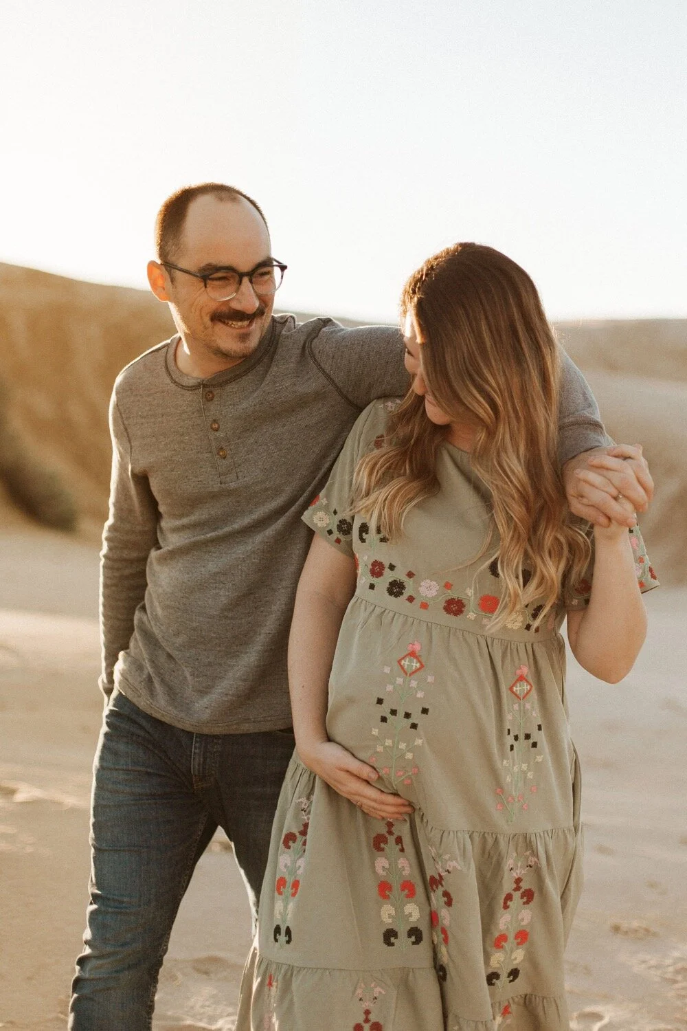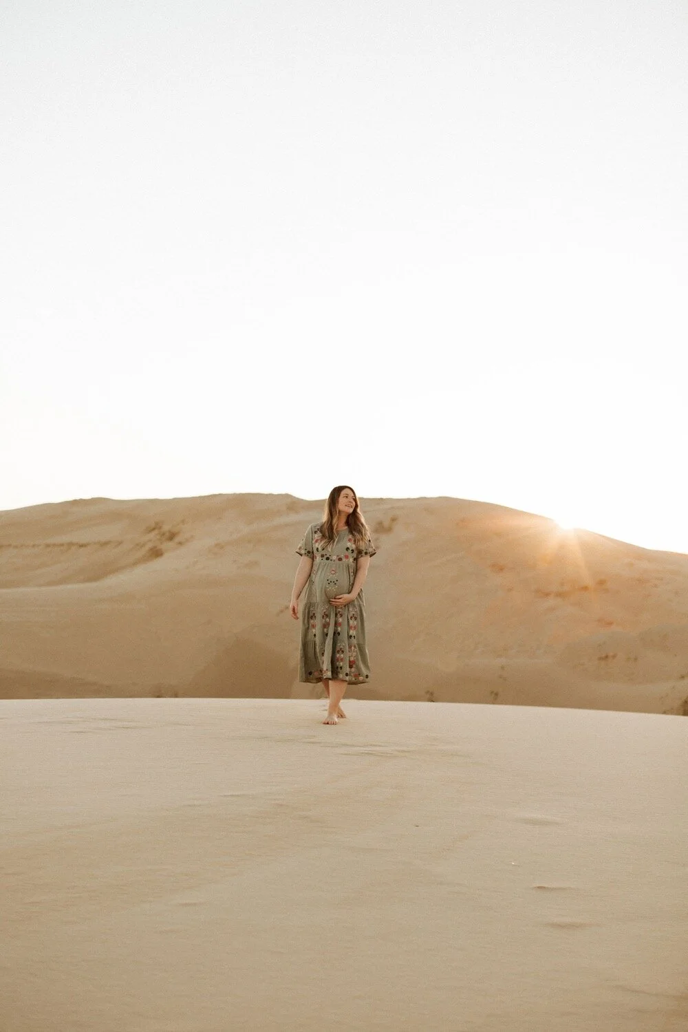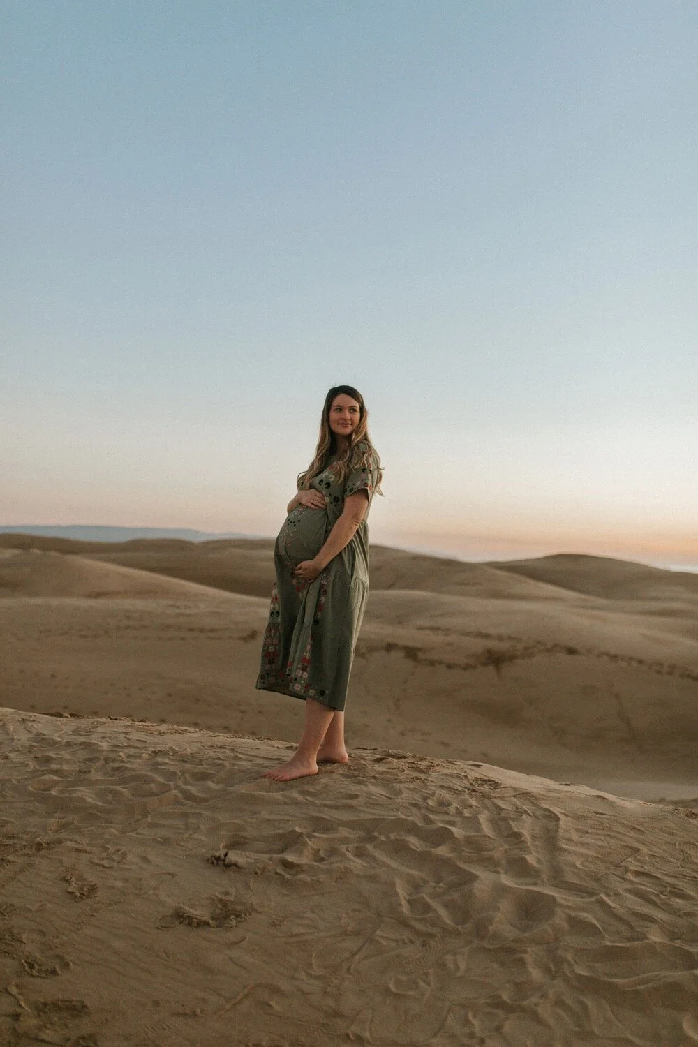These two chose the Oceano Dunes for their maternity session partially because there is no more epic place for photos than this spot on the Central Coast. However, they mostly chose it because it has become a special spot for them. When the pandemic began and the whole world shut down, Will & Savannah began exploring more of this area they call home, discovering the Oceano Dunes. The two started making frequent trips to the dunes, spending evenings watching sunsets and climbing the steep, ever changing landscape around them. Just around this season, they found out they were pregnant with their little girl, too, so there is so much significance to this place and the role it’s played in this season for them!